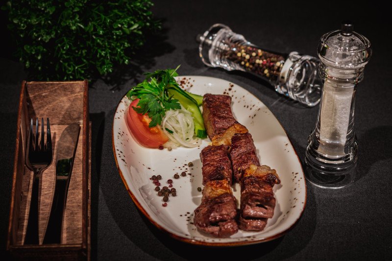 Шашлык из телятины с овощной гарнировкой (без соуса)